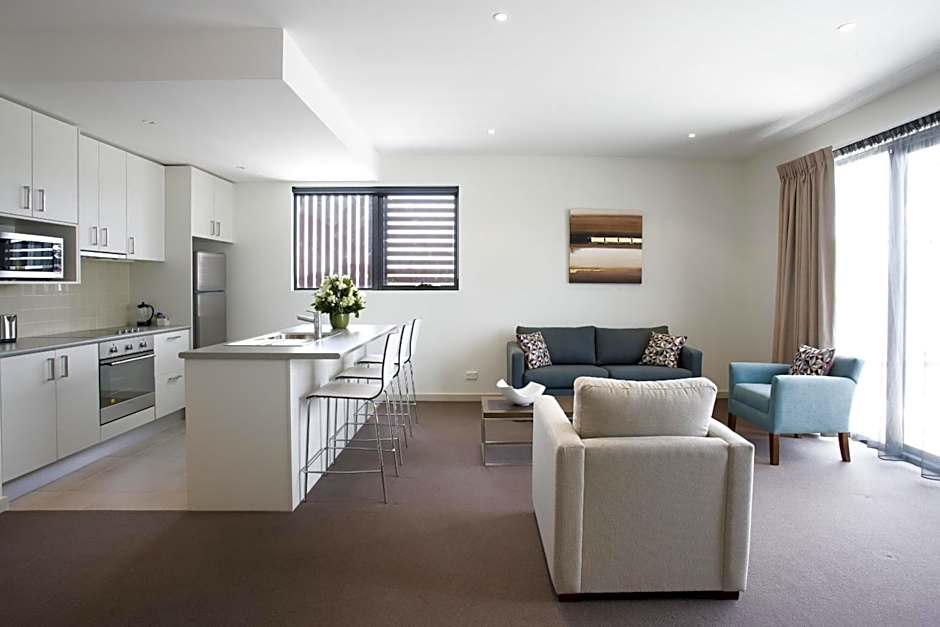 This spacious apartment offers a fully equipped kitchen, laundry, separate bedroom and a lounge/dining area. There is also a private balcony or courtyard with outdoor seating.